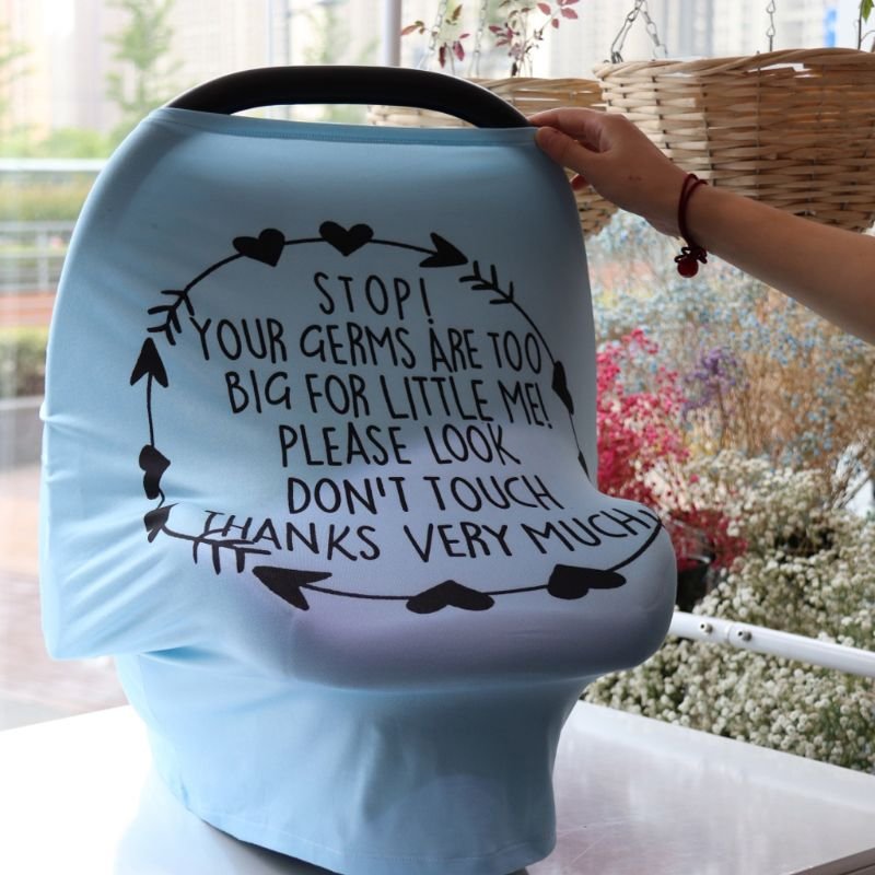 This stroller cover is beautiful heart deisgn ,also printed with letter"Pls Don't Touch" Safety Warning Sign. Can protect your baby from wind,also can protect your baby safety space.This adorable saying is large enough to grab the attention of well wishers and will keep their hands at bay